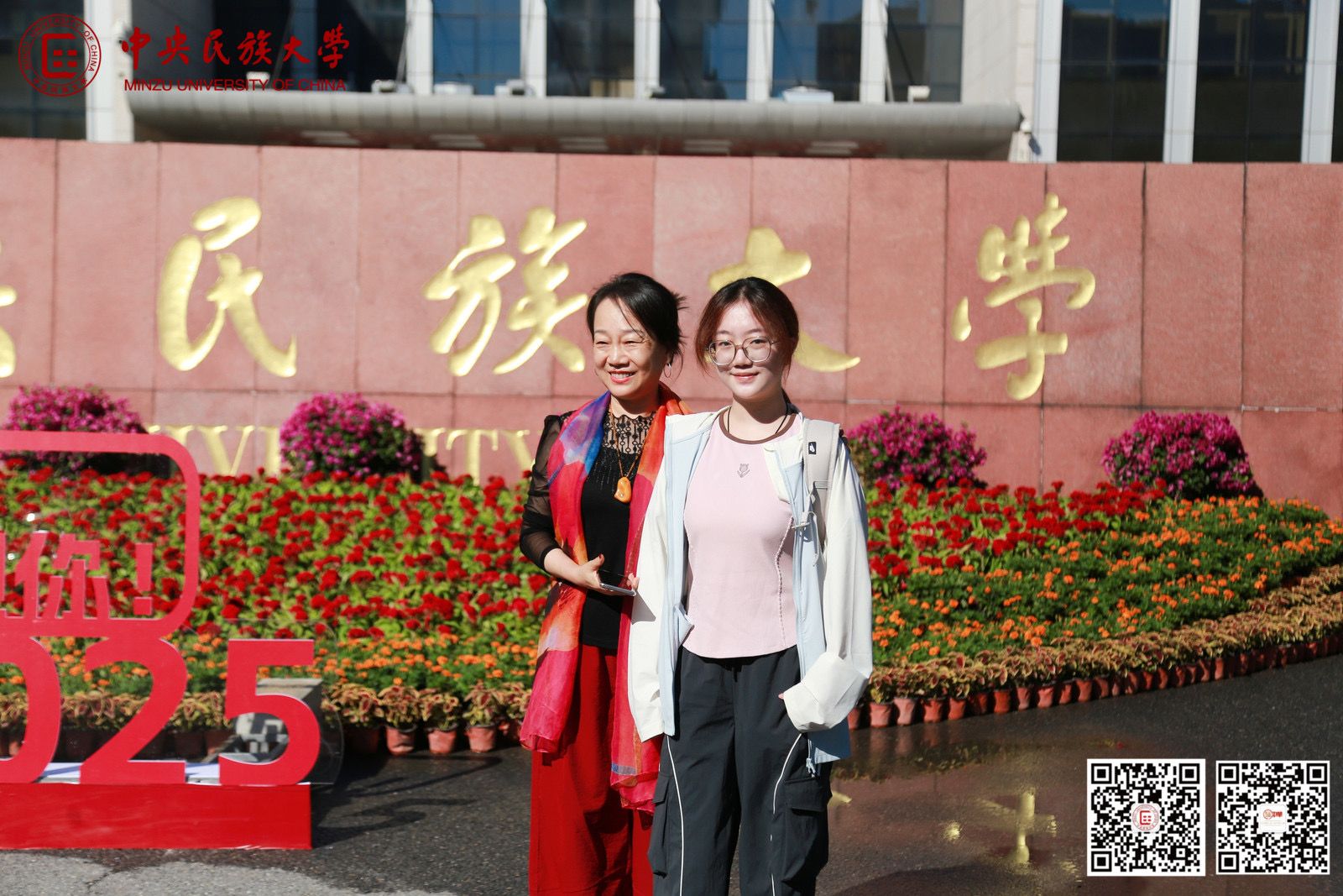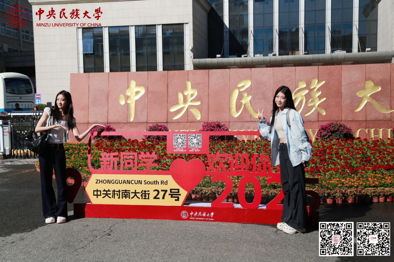 “来,和校门合张影,这是你与民大的第一帧故事。”