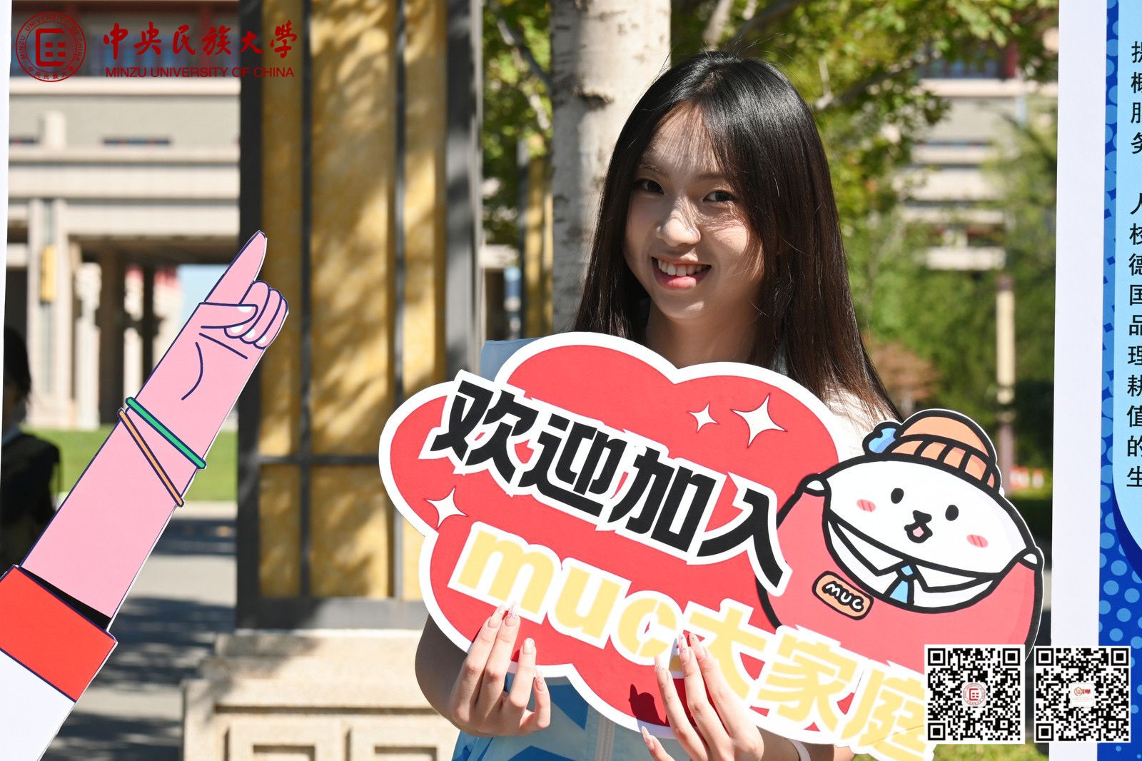 镜头对准你的笑脸,按下快门,各个迎新打卡点前的你,举着“MUC”的手牌比耶,是青春扉页上最鲜活的注脚。